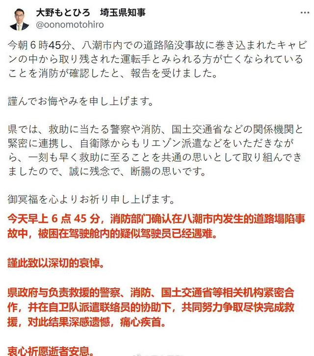 据NHK报道,日本人终于把一月份掉进地面天坑的70多岁司机大爷找到了。 不过虽然找到了,但是还没捞,打算明天捞。