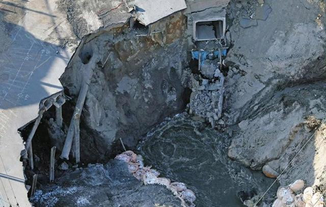 最后,第三次吊运时,连带车头一起掉进下水管。